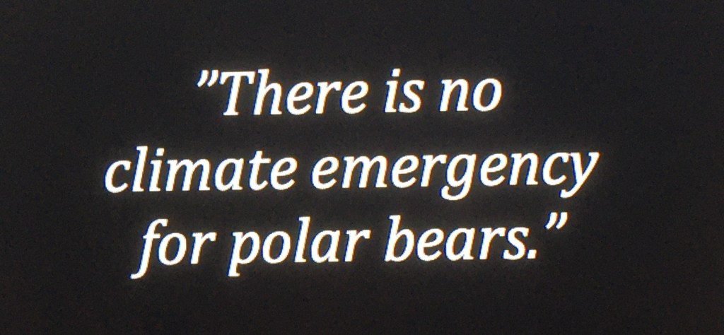 Han tar isbjörnarna som ett exempel på miljörörelsens överdrifter. Isbjörnarna är inte utrotningshotade. I själva verket växer stammen. Och det beror bland annat på att de har bättre tillgång till mat.