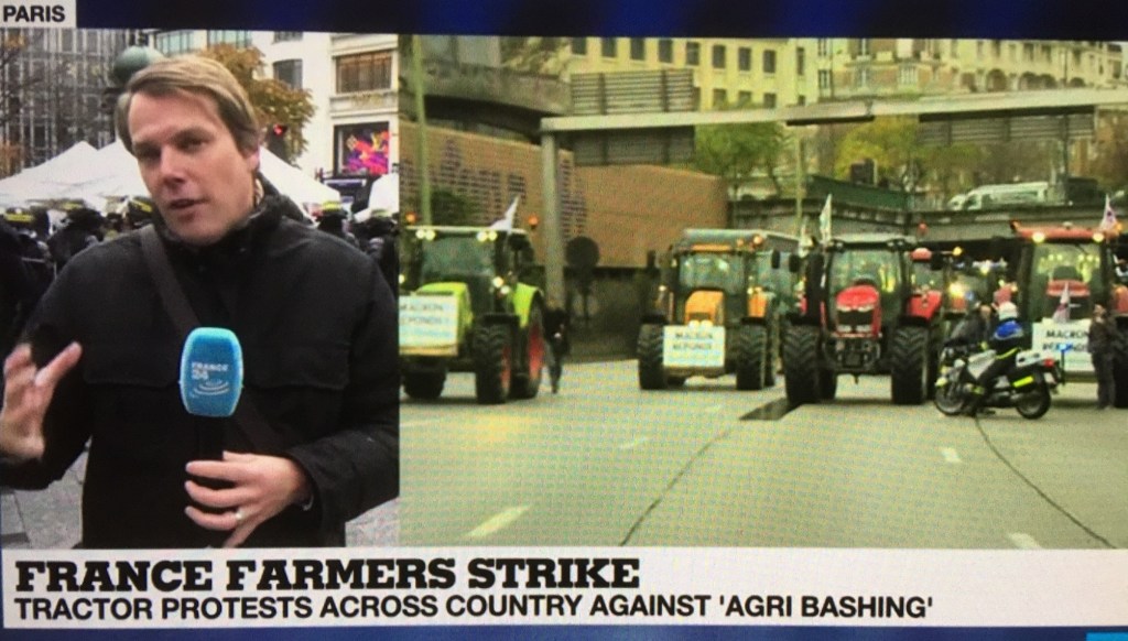NYHETER: Bondeprotester i Europa. Demonstrationer med traktorer blockerar trafiken i storstäder som Paris och Berlin. Intresset i svenska medier är dock svalt. Det framgår i franska medier att ett av skälen är att bönderna tröttnat på en miljöpolitik med allt högre kostnader, och att ständigt utmålas som syndabockar för klimatet. De är också missnöjda med medias kampanjer mot kött och animalieproduktion. I Paris kräver franska bönder att regeringen försvarar det franska jordbruket. http://www.westsidan.com/nyheter