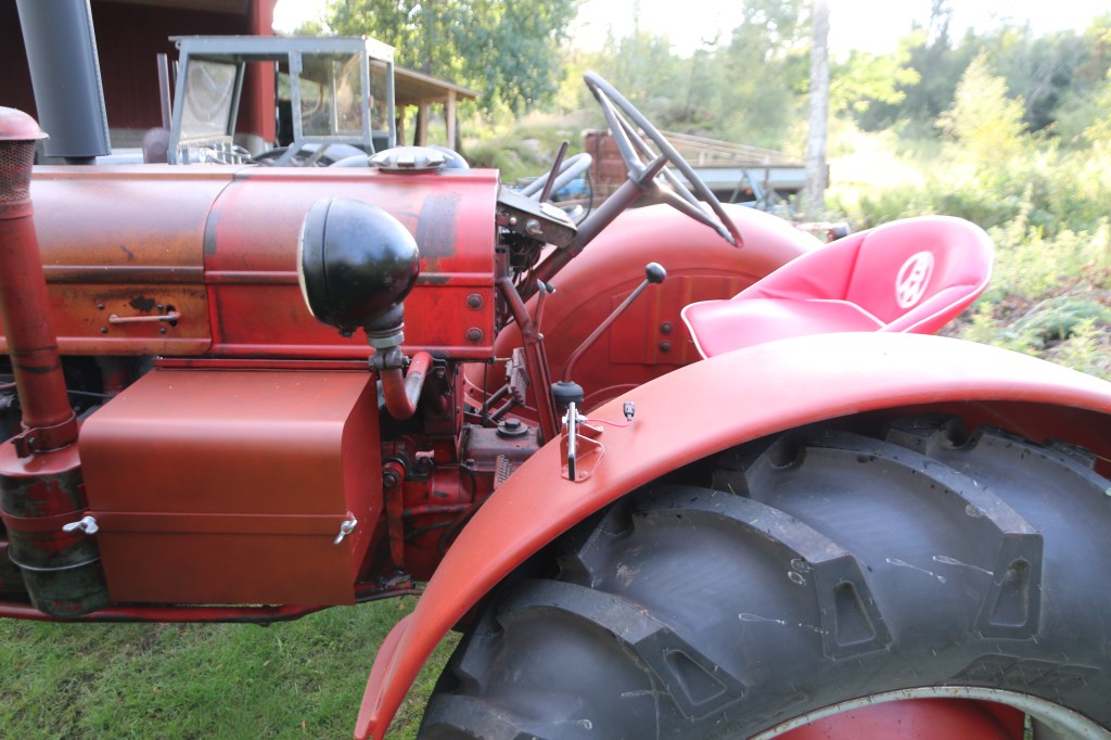Traktorn är helrenoverad 1996 av förre ägaren, berättar Andreas. Han har försett traktorn med ett extra säte.