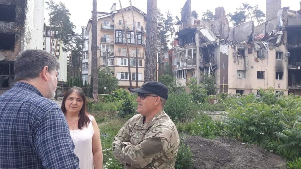 Tre ambulanser Under april månad åker jag tillsammans med Ambulans Ukraina Donation ner till Lviv och överlämnar tre ambulanser till Vlad, som nu är aktiv i en frivillig försvarsstyrka. Att överlämnandet av ambulanserna skede i Lviv och inte i Kiev, berodde på att vi bedömde säkerhetsläget allt för farligt runt huvudstaden, då de ryska förbanden vid denna tid försökte omringa Kiev genom att skära av alla större vägar. Totalt har Ambulans Ukraina Donation överlämnat fem ambulanser som idag betjänar olika kommuner. Det ukrainska försvaret av huvudstaden var väldigt framgångsrikt och efter ett par månader så ger Ryssland upp och retirerar ut ifrån den delen av Ukraina. Striderna flyttas över till östfronten. Samtidigt visar det sig att ryska förband begått fruktansvärda övergrepp på civila som inte hann fly angreppet på Kiev.